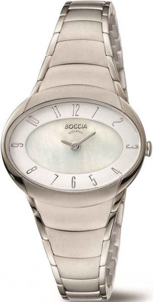 Dámské hodinky Boccia Titanium 3255-03 s titanovým pouzdrem elipsovitého tvaru. To přechází do titanového náramku. Ciferník má bílý perleťový podklad a je krytý minerálním sklíčkem, která zaručuje vysokou odolnost proti poškrábání. Dámské hodinky Boccia Titanium 3255-03 s titanovým pouzdrem elipsovitého tvaru. To přechází do titanového náramku. Ciferník má bílý perleťový podklad a je krytý minerálním sklíčkem, která zaručuje vysokou odolnost proti poškrábání. Hodinky disponují vodotěsností do 50m.