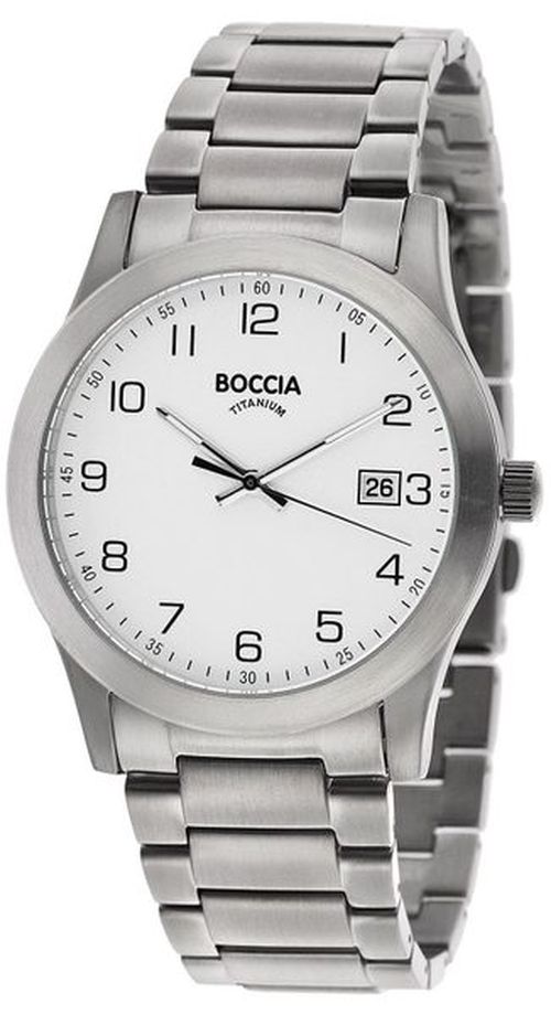 Pánské hodinky Boccia Titanium 3619-01 zaujmou elegantním a přehledným bílým ciferníkem s arabskými číslicemi a celotitanovým provedením... Pánské hodinky Boccia Titanium 3619-01 zaujmou elegantním a přehledným bílým ciferníkem s arabskými číslicemi a celotitanovým provedením. Model Boccia Titanium 3619-01 se díky svým vlastnostem hodí jak do společnosti, tak na volnočasové aktivity. Bílý ciferník chrání minerální sklíčko. Voděodolnost je 50 m, hodinky zvládnou běžný kontakt s vodou jako je mytí rukou,…