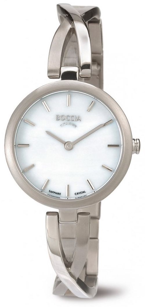 Značka: BOCCIA TITANIUM | Model: 3239-01 | Barva: stříbrná | Barva pouzdra: stříbrná | Materiál pouzdra: titan | Napájení: baterie | Materiál řemínku: titan | Průměr: 28 mm | Vodotěsnost: 50M/5ATM | Sklo: safírové | Tvar: kulaté | Určení: dámské | Typ produktu: hodinky | Typ: ručičkové
