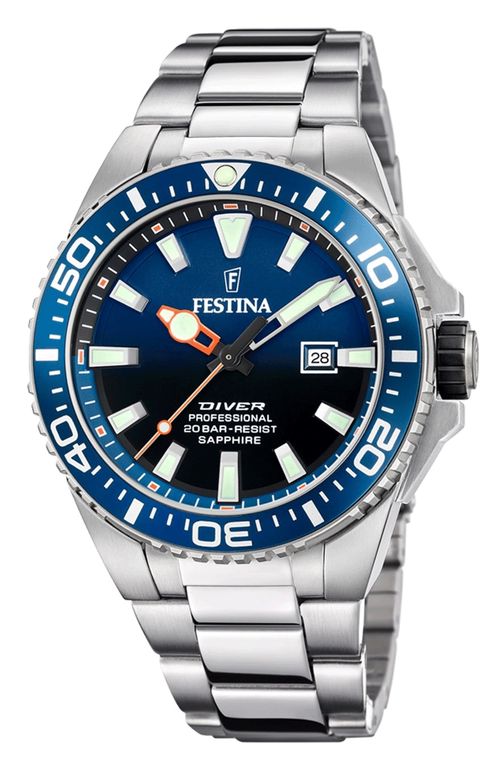 Značka: FESTINA | Kolekce: THE ORIGINALS | Model: 20663/1 | Záruka: 2 roky | Barva: modrá | Barva: stříbrná | Barva pouzdra: modrá | Barva pouzdra: stříbrná | Materiál pouzdra: ocel | Napájení: baterie | Materiál řemínku: ocel | Funkce: Datum - den v měsíci | Vodotěsnost: 200M/20ATM | Sklo: safírové | Tvar: kulaté | Typ zapínání: překlápěcí přezka s pojistkou | Číslice na ciferníku: indexy | Určení: pánské | Typ produktu: hodinky | Typ: ručičkové | Šířka řemínku: 26,5 | Průměr: 45,7 | Tloušťka: 14,1 | Strojek: Miyota 2115