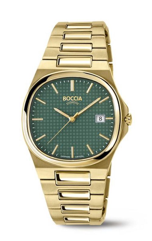 Pánské hodinky Boccia Titanium 3657-05 jsou univerzálním kouskem, který nezklame jak při běžném nošení, tak ve společnosti. Titanové pouzdro s PVD zlacenou úpravou doplňuje náramek ze stejného materiálu. Přehledný a přesto elegantní číselník chrání safírové sklíčko, které je maximálně odolné vůči poškrábání. Voděodolnost tohoto modelu je 50 m, což vystačí na menší kontakt s vodou jako je mytí rukou nebo déšť. Na pozici třetí hodiny najdeme praktický ukazatel data. Zajímavý je také vzor na číselníku.…