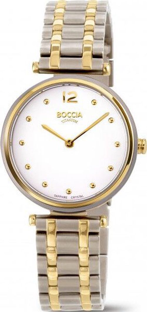 Dámské hodinky Boccia Titanium 3349-03 jsou určeny pro všechny možné příležitosti. Hodinky se hodí jak na denní nošení, tak i pro společenskou událost. Zaujmou především svým jednoduchým stylem, díky kterému jsou čitelné hned na první pohled. Model je vyveden v kombinaci titanového pouzdra a titanového náramku, jehož velikost lze velmi snadno upravit. Pouzdro i náramek jsou vyvedeny v kombinaci bicolor, mají PVD povrchovou úpravu ve zlaté barvě. Model hodinek Boccia Titanium 3349-03 je přesně tím, co na…