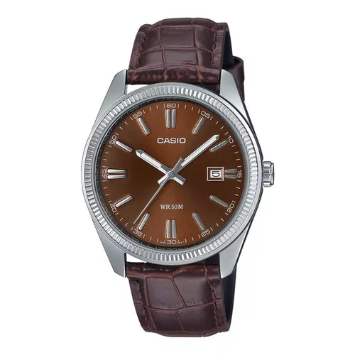 Hodinky Casio MTP-1302PL-5AVEF z kolekce Classic Collection nabízí jednoduchý, nadčasový klasický vzhled, podpořený moderním barevným číselníkem. Jejich nadčasovost z nich dělá ideální doplněk pro každý den. Hnědý číselník hodinek Casio MTP 1302PL-5AV s efektem slunečního brusu je podkladem tištěné minutové stupnici a stříbrným leštěným indexům na pozicích hodin. Chrání jej minerální sklíčko. Hůlkové ručky hodinek jsou opatřeny luminiscencí a usnadňují tak čitelnost při přechodu do tmy. Pokovené mosazné…